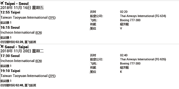 爬過蠻多關於搭泰航飛往首爾的文章,幾乎來回班機的時間沒有太多變化