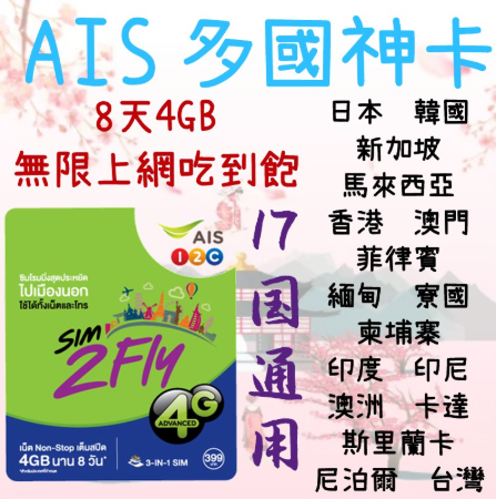 網卡我是在蝦皮購買 AIS多國神卡 8天4GB 上網吃到飽![]()