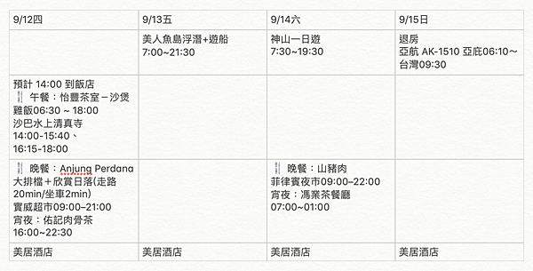 # 沙巴詳細行程?